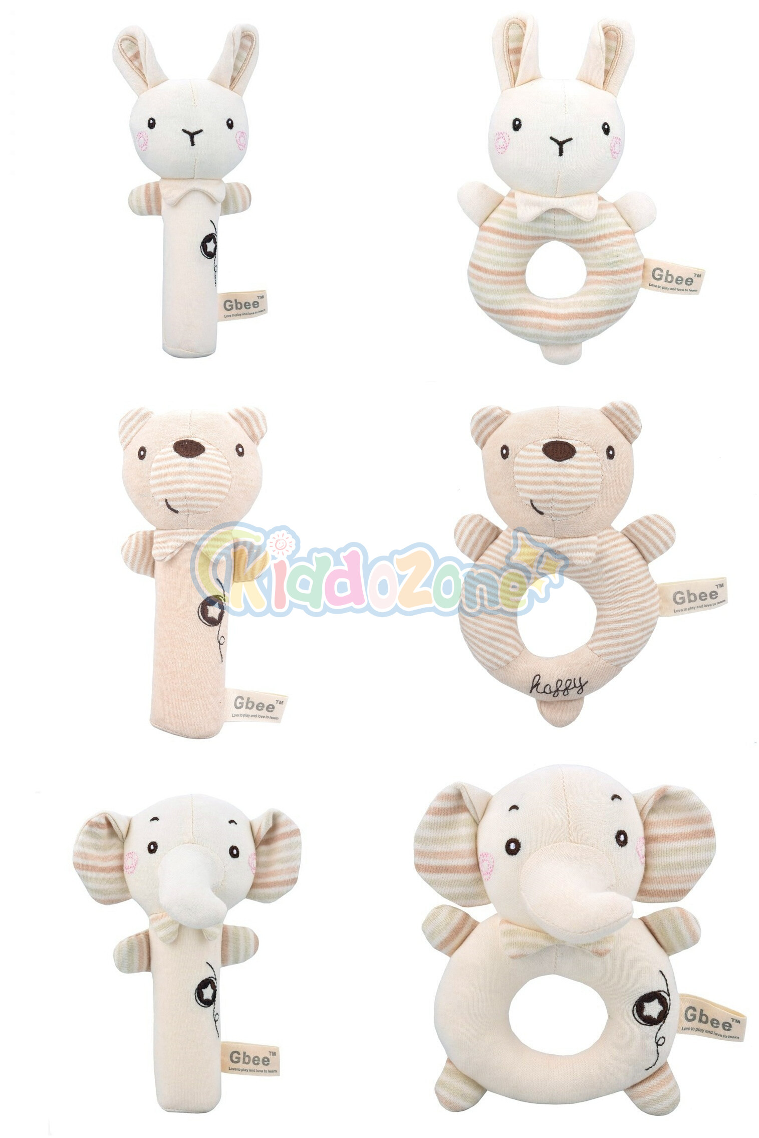 KiddoZone 2PCS婴儿摇铃儿童有机棉软挤压摇铃可爱动物安抚手摇铃毛绒手铃玩具BB声音0-3岁男孩女孩婴儿教育玩具